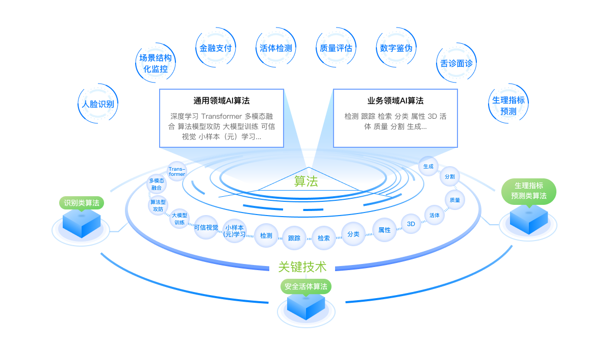 九州酷游官网AI计算机视觉核心技术是基于深度学习算法的创新型研究和应用,涵盖了金融支付、生物识别、可信活体检测、生理健康指标预测等多个场景,为客户给予高质量、全方位的服务。九州酷游官网计算机视觉解决方案取得了卓越的成果,具有高精度、高鲁棒性、高实时性等优势,其中人脸辨识技术和活体检测技术已顺利获得BCTC检测,达到国家认证金融支付级安全标准。